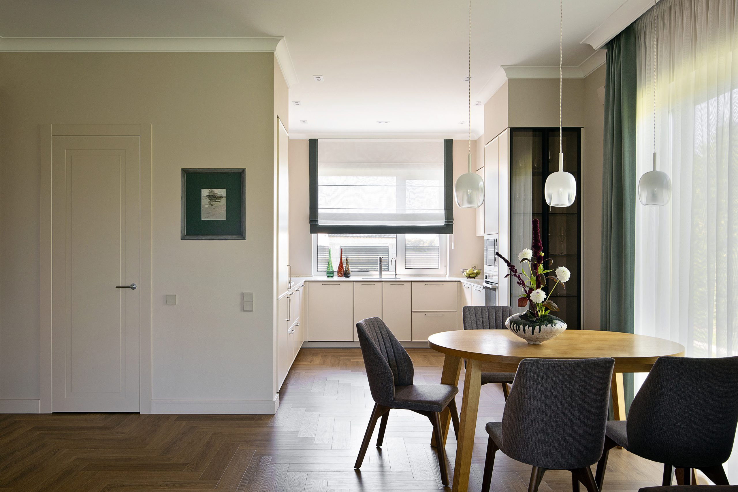 — Мои заказчики построили просторный дом (186 кв. м) в одном уровне и пригласили меня присоединиться к проекту еще на этапе возведения стен, — рассказывает Екатерина Беседина. — До этого они уже жили в собственном доме, поэтому новый спроектировали достаточно грамотно. Мы лишь откорректировали канализационные выводы в ванных комнатах с учетом расстановки сантехники, изменили место для камина в гостиной и сделали более высокими дверные проемы, чтобы сохранить ощущение воздушности пространства